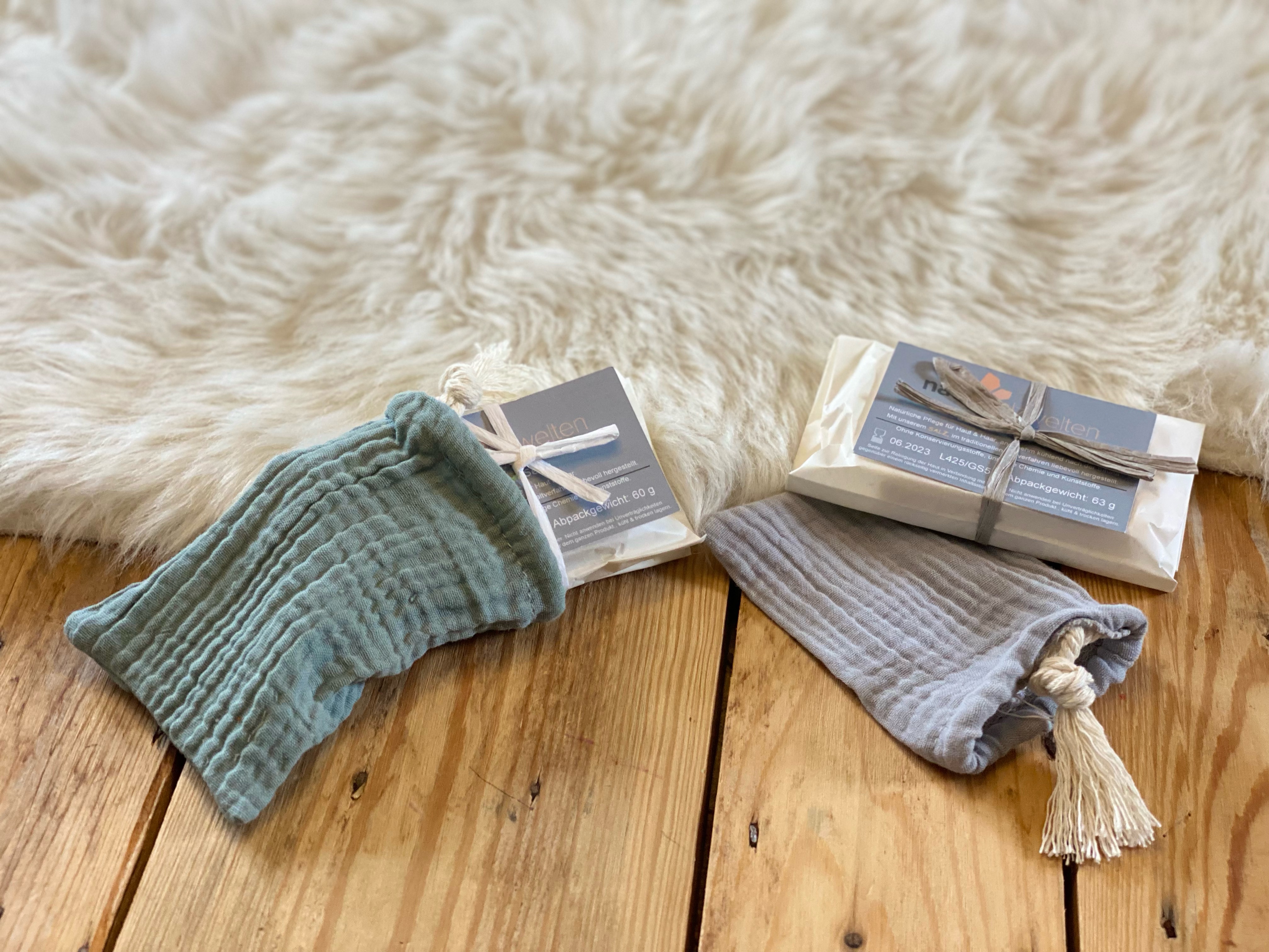 Für alle, die ihre Hautpflege nachhaltig gestalten möchten, ist ein SeifenSäckchen genau das Richtige! Einfach die Seife oder das feste Shampoo in das Säckchen, an der Schlaufe in die Dusche gehängt und schon hast Du einen großen Beitrag zur Müllreduzierung geleistet!